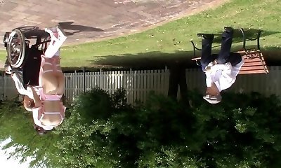 Subtitled bizarre Japanese half naked caregiver outdoors