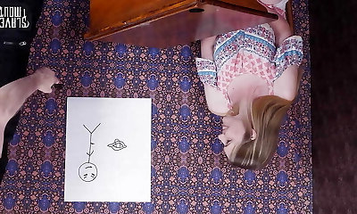 Slender blonde girl dominates a roped up guy, sucks his cock and spanks him