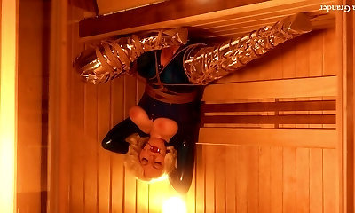 Spandex Rubber Catsuit And Rope Bondage: Sizzling Blonde Milf Trying To Escape And Masturbate Wet Pussy