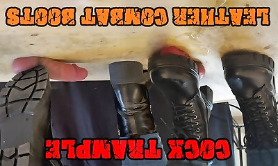 Kicking his Cock in Combat Boots Black Leather - Cbt Bootjob with TamyStarly - Ballbusting, Femdom