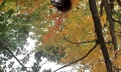 Outdoor bondage - roped to a tree