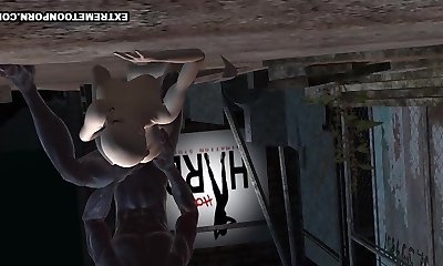 Big-titted 3D Babe Fucked Outdoors by a Zombie