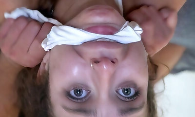 Teen trussed up and fucked in mouth! Huge Cum Facial