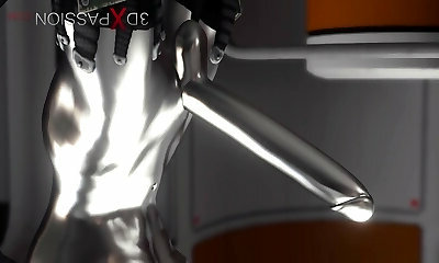 Sci-fi theme. Male Android Rams Hard A Scorching ebony in the lab