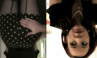 Mother-in-law lifts up her new dress and shows her legs and bootie in pantyhose