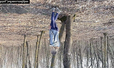 ash-blonde MILF on a run masturbates in public and gets squirted in leggings