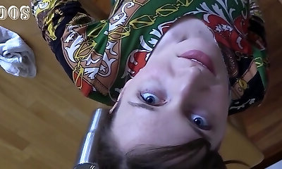 Hot housewife Lukerya in a dog collar, white nylon stockings and handcuffs