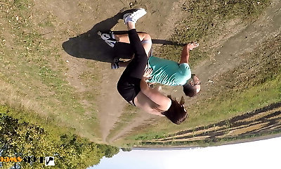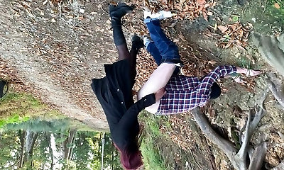 Domme Nika fucked her slave in the ass in the park without lube. Pegging in public doggy style with ass spanking