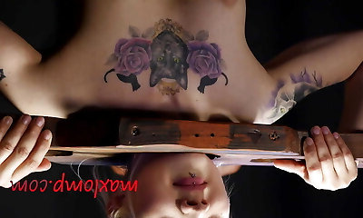 Slave with small globes having her pussy drilled with toy in Sadism & Masochism