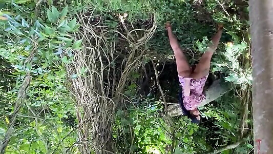 Phat ass tranny got lost in the woods and spent the time masturbating her big cock