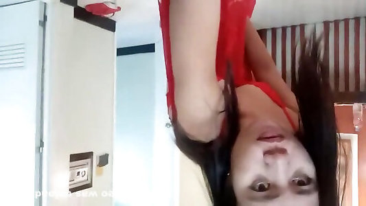 Dark haired skinny sweetheart plays with her warm piss on camera