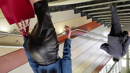 Beautiful slim woman in a leather microskirt